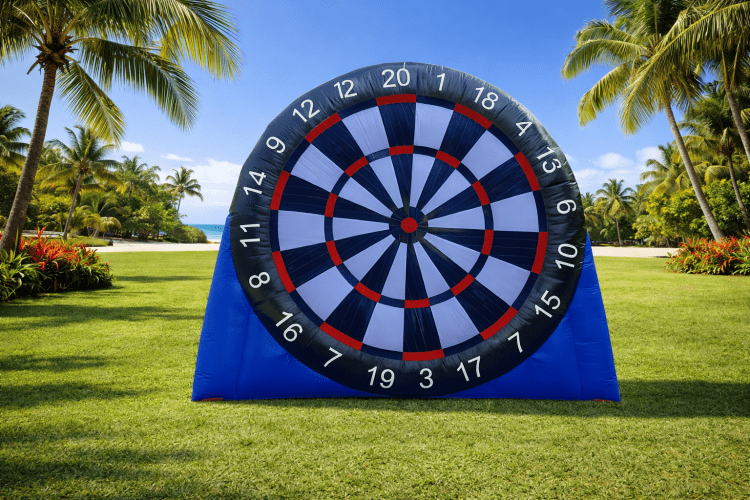 Soccer Dart is a fun and interactive game that combines the precision of darts with the energy of soccer. Players kick a Velcro soccer ball at a giant inflatable dartboard, aiming to hit specific targets and score points—just like in traditional darts. It’s perfect for parties, team-building events, and outdoor fun, suitable for all ages and skill levels!